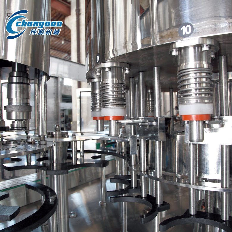 3-5L大瓶水灌裝設(shè)備灌裝速度快、液面控制穩(wěn)。采用鏈道進瓶、沖洗、卡瓶口灌裝、封蓋、不受瓶子高矮限制,只要瓶口、瓶頸、瓶蓋尺寸相同一致,隨意更換瓶型,更換瓶型同時需更換所有拔輪導(dǎo)板即可,擰蓋頭采用磁力扭矩式,實現(xiàn)抓蓋、擰蓋功能。