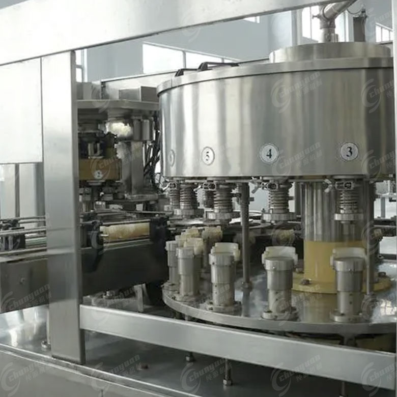 飲料灌裝系統(tǒng):灌裝閥打開,通過精確控制,將含氣飲料注入到易拉罐中。同時,飲料灌裝機器通過氣壓控制系統(tǒng)向罐內(nèi)注入適量氣體,以保持罐內(nèi)外壓力平衡,確保飲料能夠順利灌裝并防止氣泡溢出,以順利、準確地完成灌裝。