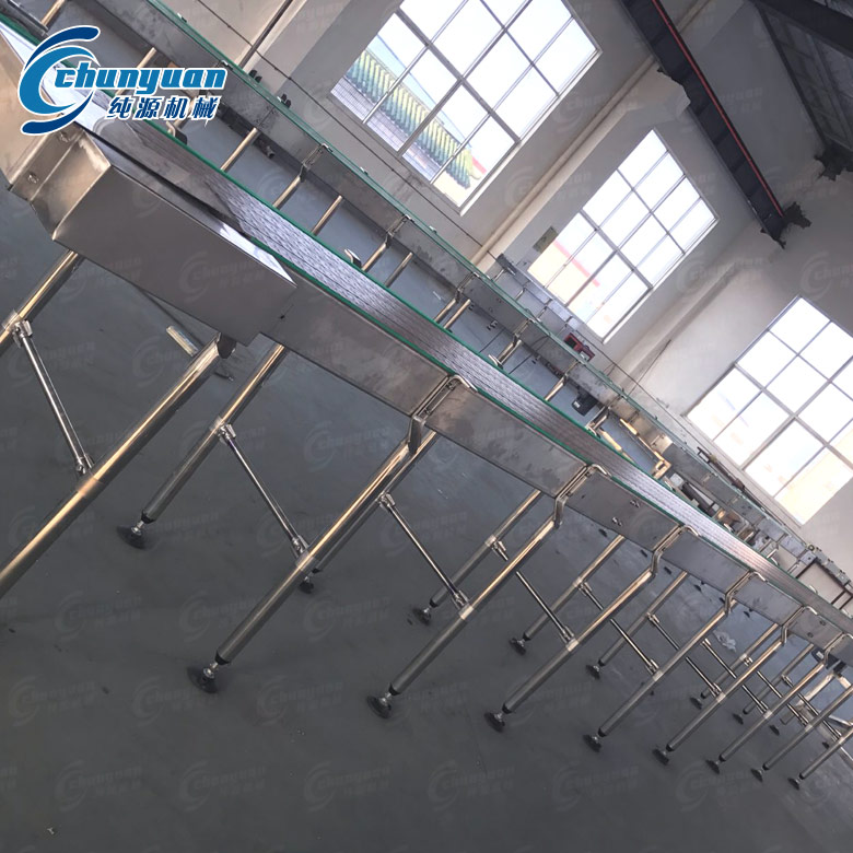 本礦泉水輸送帶結(jié)構(gòu)緊湊,控制系統(tǒng)完善,操作方便,自動化程度高。
